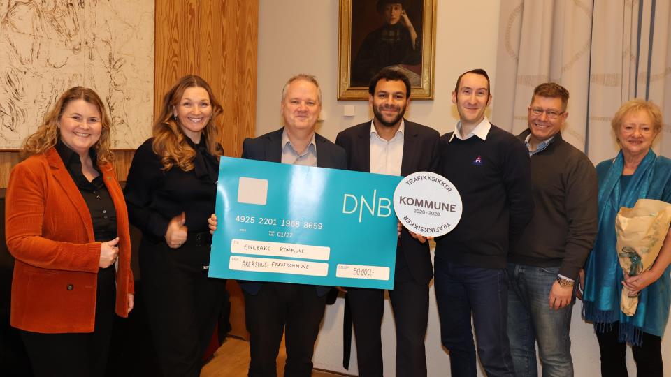 Enebakk er godkjent som Trafikksikker kommune Trygg Trafikk overrakte skilt og pengesjekk for å marker at kommunen oppfyller kravene til målrettet og helhetlig trafikksikkerhetsarbeid. Publisert 12.11.2025 kl. 09.01